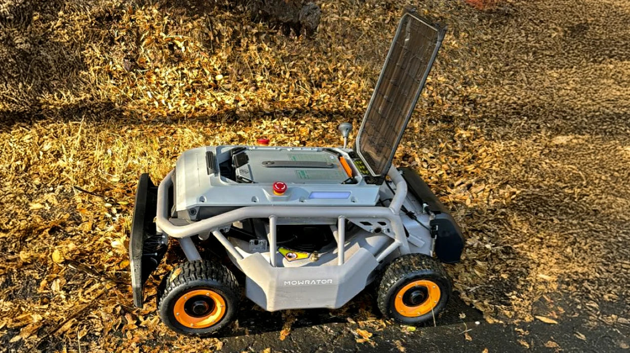 Our remote control slope mowers can tackle challenging terrains with ease. The Mowrator S1 PRO AWD can handle slopes up to 75% (37 degrees), while the ADVANCED model can manage slopes up to 45% (24 degrees).